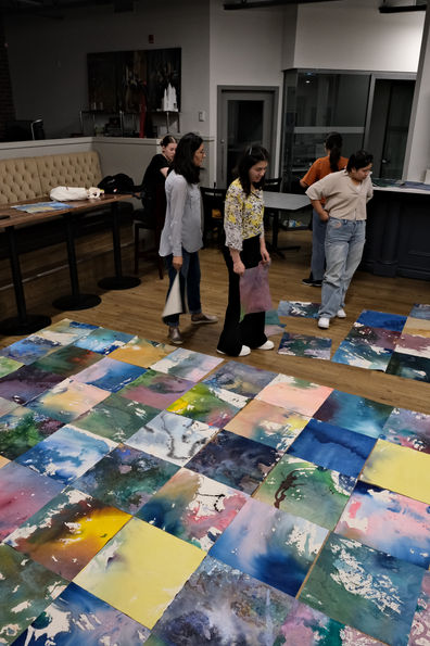 The Quilt Project قورمه جلغهی نو brings together Helen Frankenthaler’s soak-stain painting method with quilting traditions from both Canada and Afghanistan through the 30 Birds Foundation. Working together, lead artist Hailey Weber, 30 Birds artists, and Saskatoon-based emerging women artists reimagine abstraction not as the product of a solitary “genius” painter, but as a collective practice rooted in care, storytelling, and feminist resistance.