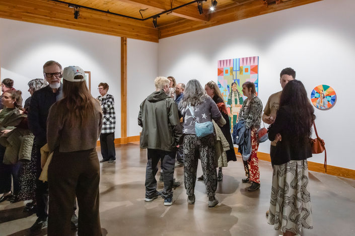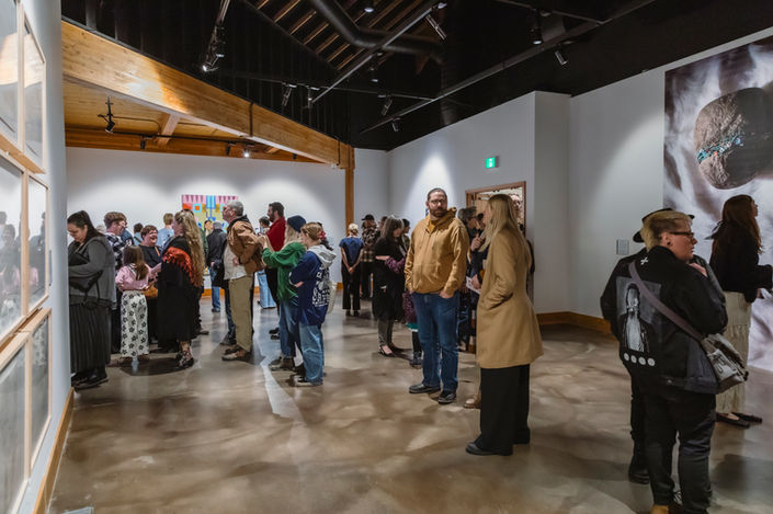 Inside, works of art that encourage the same lines of reflection fill the space. Energetic portraits by Wally Dion, Torrie Ironstar, and Brody Burns command the room, grounded in figuration and interwoven with portraits by Audie Murray, David Garneau, and Melanie Monique Rose, works that expand beyond the figure and request a second, closer look. Relating through shared themes of presence, memory, and identity, as their varied approaches to representation and medium reframe how portraiture is understood.